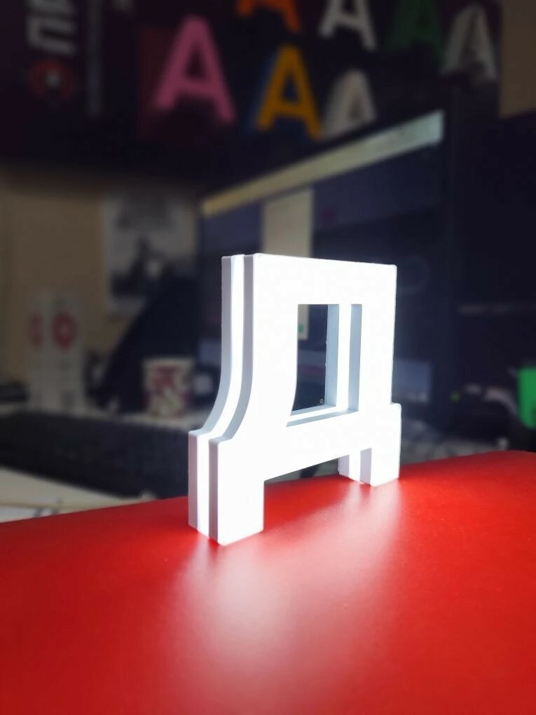 - Производство уникальных букв, каких нельзя сделать, используя классические технологии(смещенный внутрь или наружу борт, вставки световых полос, перфорированное лицо и другое)